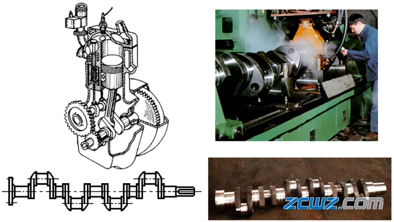 2)曲轴:各轴段轴线不在同一直线上,专用零件,主要用于内燃机中。