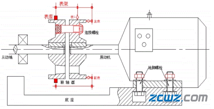 用两块百分表分别测量联轴器外圆和端面同一方向上的偏差值,故又称--点测量法,即在测量某个方位上的径向读数的同时,测量出同一方位上的轴向读数。具体操作步骤如下:
