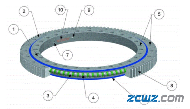 设备本身和及其运转产生的载荷通过紧固螺栓等结构作用于轴承上。虽然转台轴承有能力应对所有类型的组合负载,但是它主要作用是承受轴向负载。偏离中心的轴向载荷也会给形成转矩。