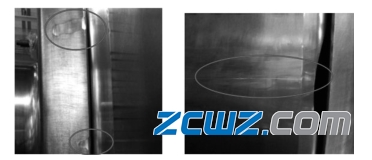 套圈挡边与滚动体端面的擦伤称作卡伤,由于滚动体质硬,一般造成挡圈表面粗糙,伴有微小溶敷,内圈表面横向划伤(见图2)。