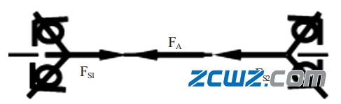 (2)Fs1=Fs2+FA,此时轴在轴向外载荷与内部轴向力作用下达到了平衡状态,轴不会产生轴向移动,二轴承均处于放松状态,只受纯径向载荷的作用,故 Fa1=Fs1,Fa2=Fs2。