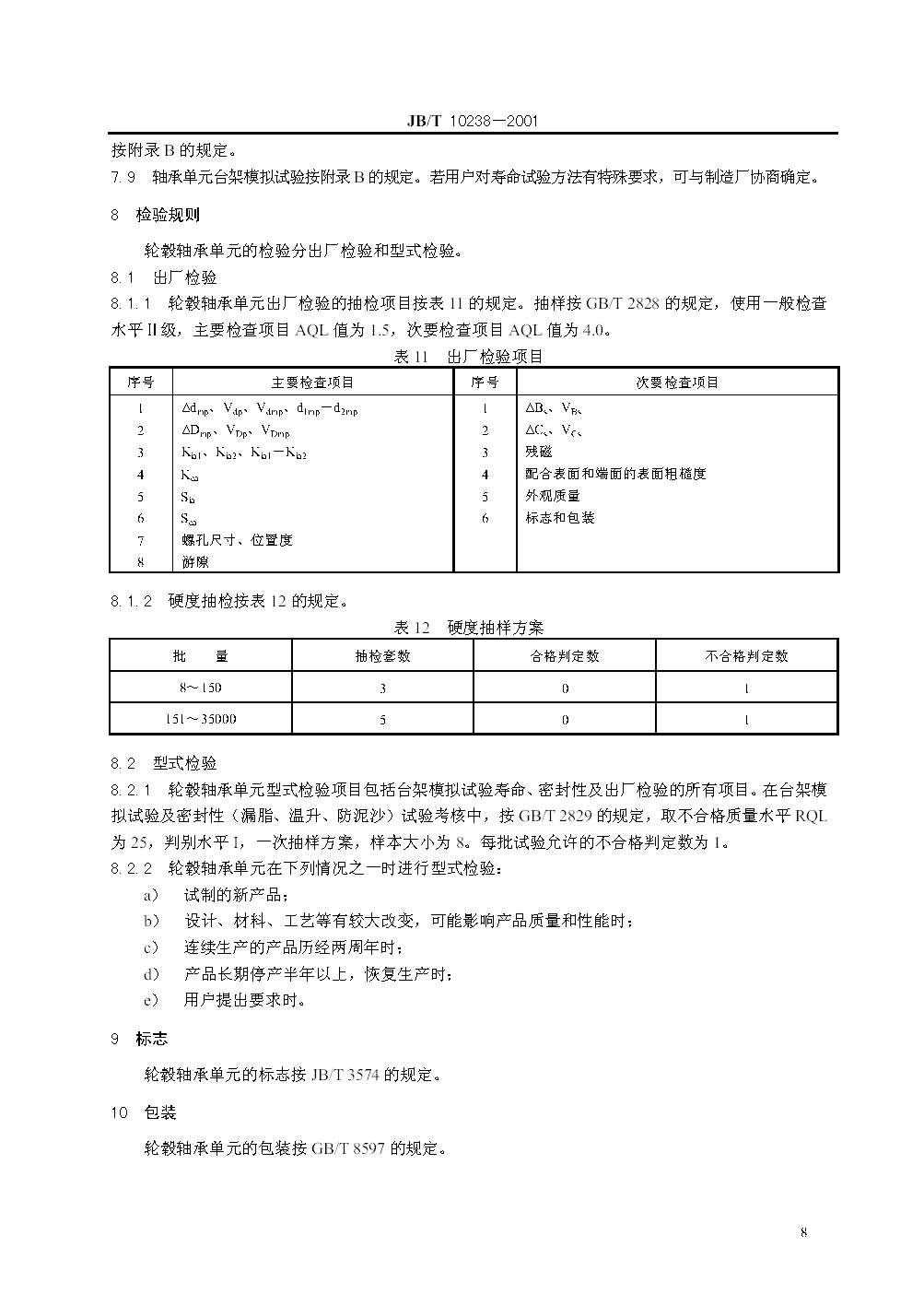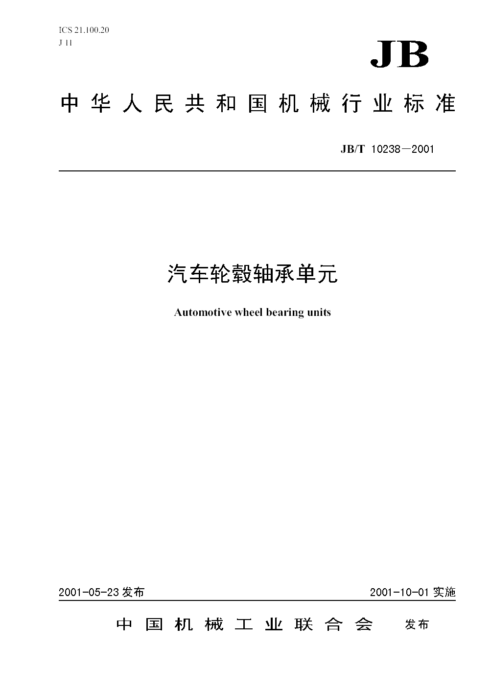 JB/T 10239-2001 滚动轴承 深沟球轴承卷边防尘盖技术