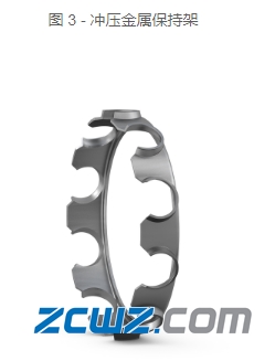 冲压金属保持架(钢板或黄铜薄板)重量轻且可耐受高温。