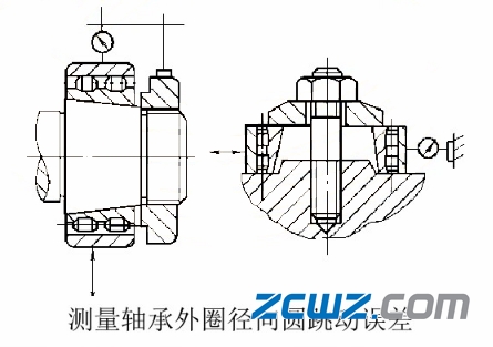 转动外圈并沿百分表方向上下(左右)施加一定的负荷,标出外圈径向圆跳动的最高(低)点和数值。