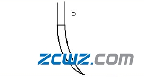 b、侧间隙在图样上无规定时,每面为顶间隙的1/2。侧间隙需根据需要刮削出来。但在刮削轴瓦时不可留侧间隙,因刮轴瓦时,需确定轴在180°范围内的正确位置,此时需有侧间隙的部位应暂时作为轴的定位用,要在轴瓦基本刮削完毕时,将侧间隙轻轻刮出。侧隙部位由瓦门的结合面处延伸到规定的工作接触角度区,轴向与油槽带、润滑楔角相接,此部位是不应与轴有接触的,刮削时应注意这点。留侧隙的目的,是为了散失热量,润滑油由此流出一部分并将热量带走。侧隙不可开得过大,这样会使润滑油大量地从侧隙流走而减少轴与轴瓦所需用的润滑油量,这点应特别注意。侧隙如图4所示,最宽处b为瓦口计划面处,尺寸为规定侧间隙的最大值。侧隙与瓦口平面处的尖角应倒角,视轴瓦大小,一般为1x45°~3x45。侧隙基本上是由两段不规则的圆弧组成的。