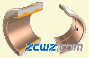 a、半开式滑动轴承,都是采用强力润滑,油槽一般都开在不受力的上瓦上(上瓦受力较小)。截面为半圆弧形,沿上瓦内周180°分布,由机械加工而成。油槽中间位置与上瓦中心位置的油孔相通,两端连接瓦口油槽带, 由于上瓦有间隙量存在,润滑油很容易进入上瓦面与轴上,其主要作用是能将润滑油畅通地注入轴瓦内侧(径向)的瓦口油槽带。