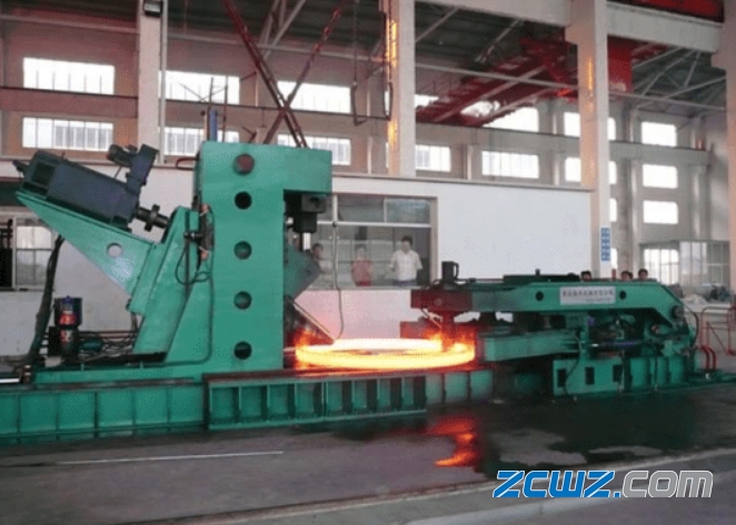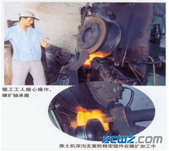 辗扩是一种在专用扩孔机上将套圈毛坯壁厚减薄,使内径和外径同时扩大, 并获得要求端面形状的工艺。