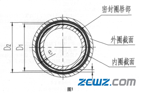 式中:D2-密封圈唇部直径尺寸;D1-内圈截面直径尺寸;e-常规下密封圈唇部单边过盈量。