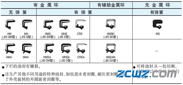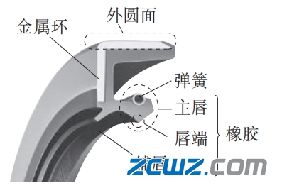 成品油封的多种类型和尺寸已标准化,油封各部分的名称和功能图(如图4和表1所示),其代表性类型如下表2所示。