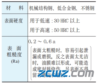⑤为充分发挥油封的密封性能,还应重视与油封接触的轴的材料、表面硬度、表面粗糙度等,如表4所示为轴承的推荐条件。